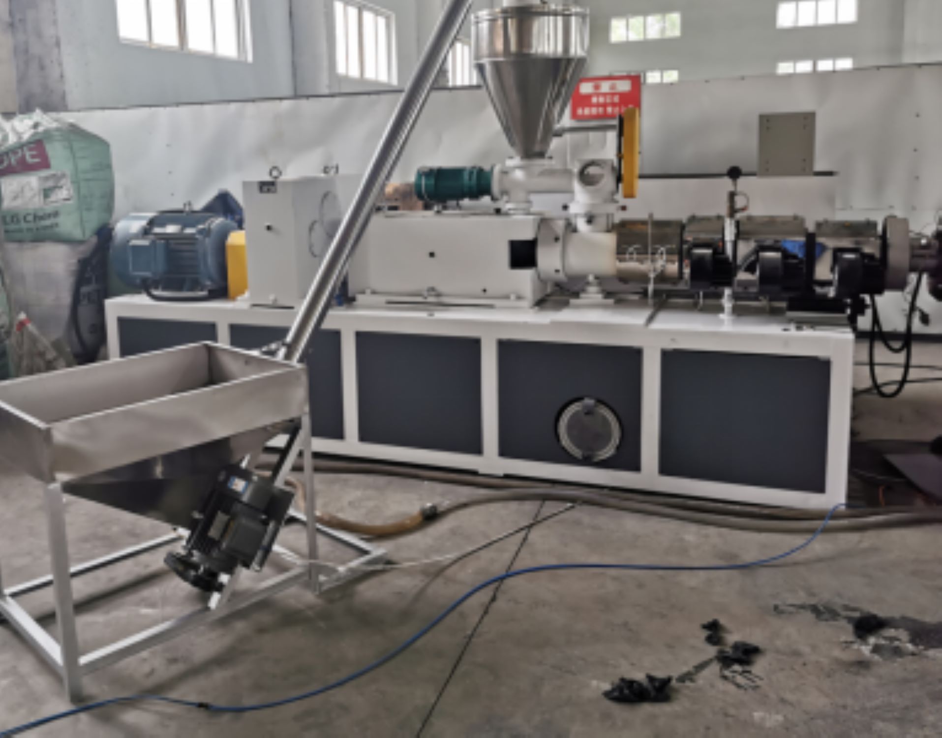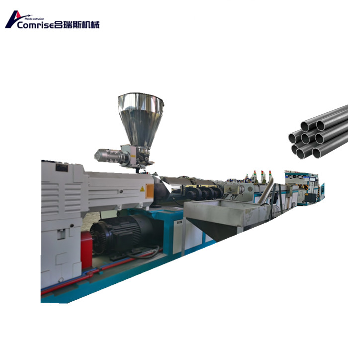 2。PVCパイプ生産ラインは、円錐形のツインスクリュー押出機、真空キャリブレーションタンク、プリンター、トレーラー、カッター、スタッカークレーンなどで構成されています。