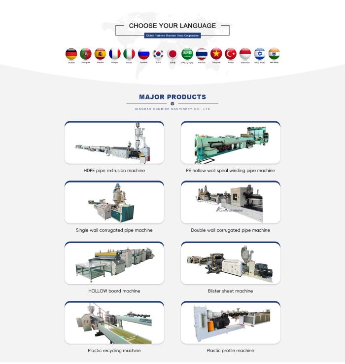 また、PEパイプ生産ライン、PVCパイプ生産ライン、プロファイル生産ライン、顆粒生産ライン、シート生産ラインなど、多くの製品があります。さまざまな製品から選択できます。